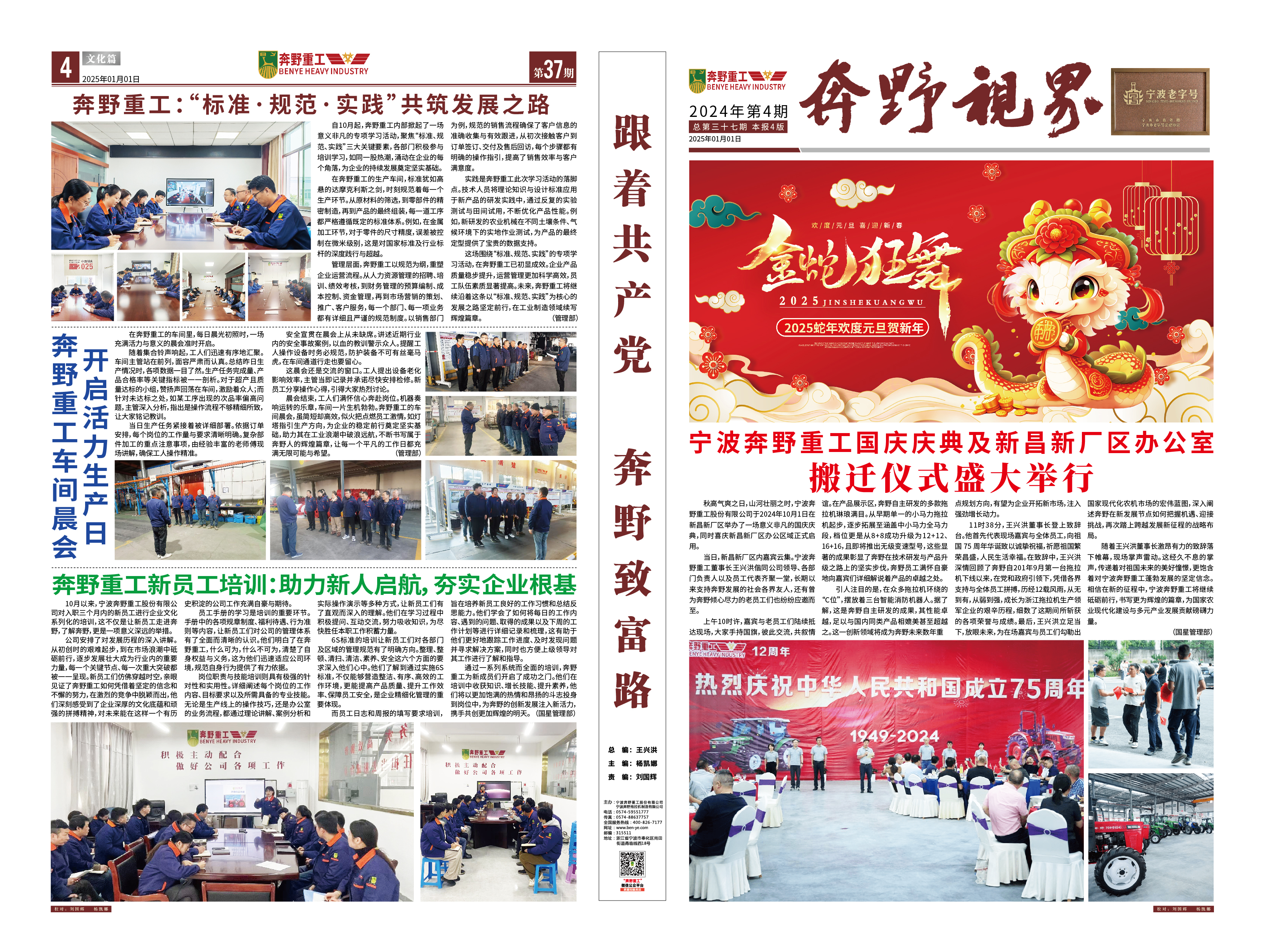 是一家非道路用農用拖拉機整機及部件設備研發、制造、銷售、服務為一體的涉農科研型生產企業,專業生產寧波型奔野系列拖拉機,是國家高新技術企業、工信部專精特新“小巨人”企業、浙江省知名商號,寧波市級農業龍頭企業、脫貧攻堅-產業合作樣板企業、鄉村振興先進集體,在寧波、新昌、吉林等地均設有生產基地,占地150多畝。公司現有技術骨干30多人,零部件自制化水平達到30%以上。公司目前擁有發明專利10余項,實用新型專利、外觀專利、版權近50項,擁有自主的知識產權保護品牌。公司所處的農業農機領域是國家重點關注和保障的、關乎國計民生的領域,得到國家和地方政府的大力支持,行業發展勢頭良好。